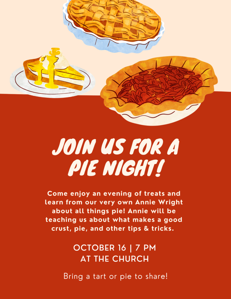 Come enjoy an evening of treats and learn from our very own Annie Wright about all things pie! Annie will be teaching us about what makes a good crust, pie, and other tips & tricks.