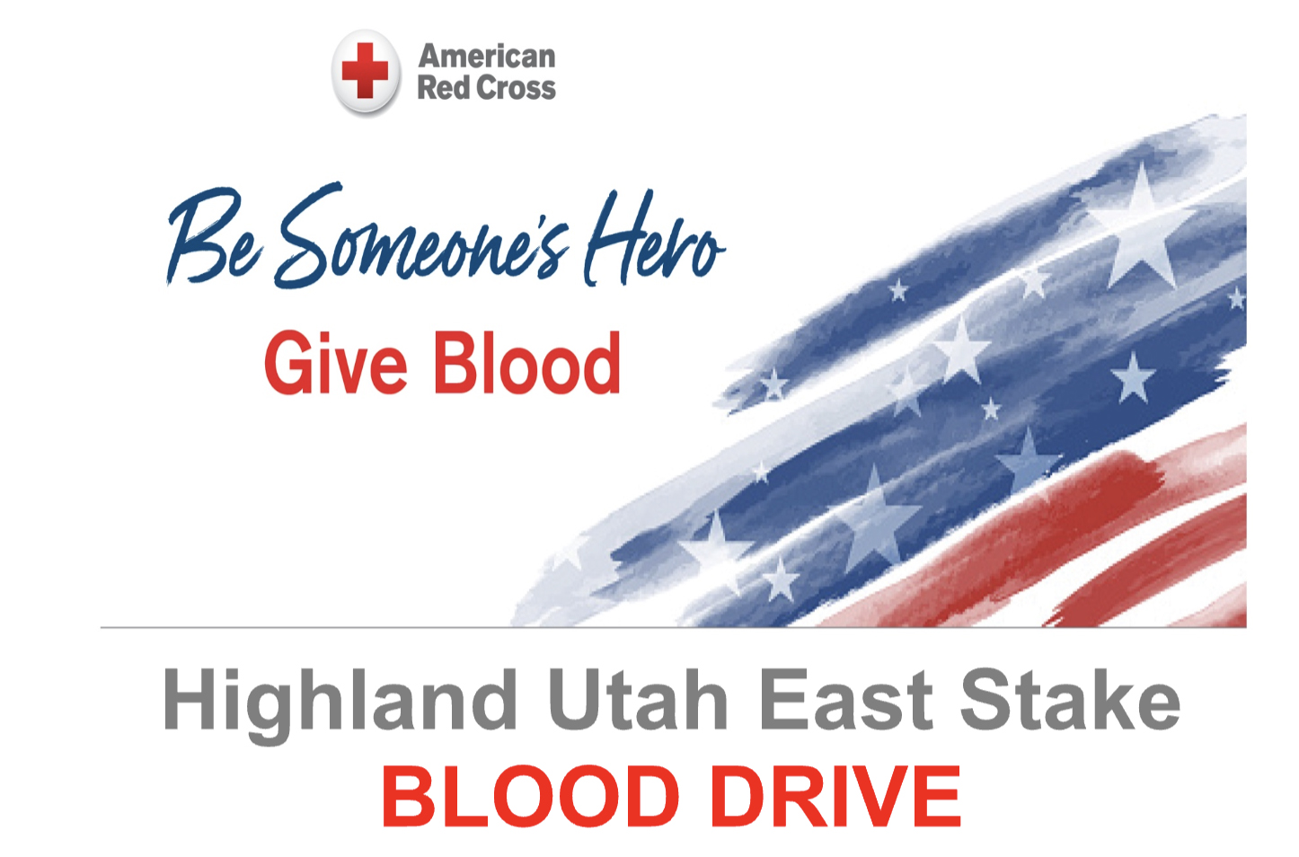 Thursday, January 8, 20261:00 pm – 7:00 pm Highland Utah East Stake Blood Drive4679 W 11000 N, Highland Click on this link to make an