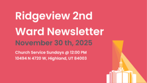 Dear Ward Family, Merry Christmas! We hope you’re enjoying the season and all the holiday planning that comes with it. Here are a few reminders